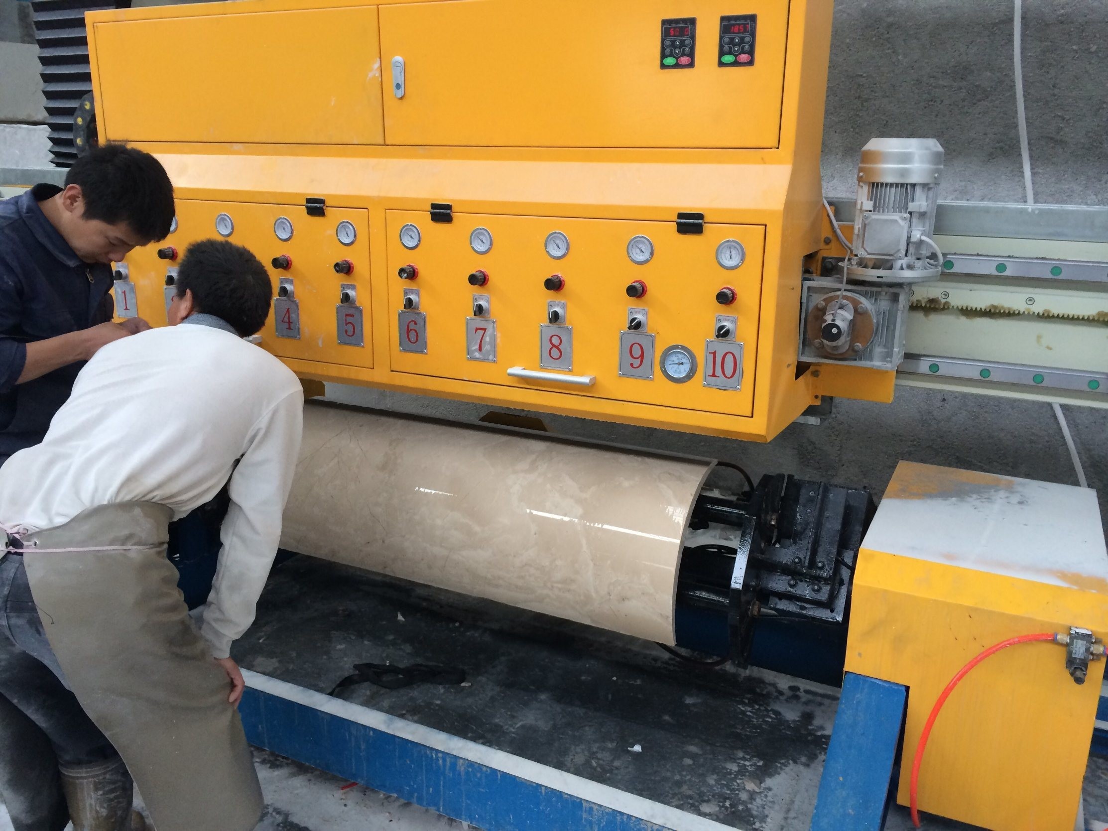 เครื่องจักรนี้ยึดแผ่นพื้นวงกลมด้วยสุญญากาศ ซึ่งดีกว่าการยึดด้วยการจับสองด้าน ช่วยแก้ปัญหาที่เกิดจากข้อผิดพลาดในแนวตั้งและการเอียงหลังจากการตัดแต่ง และจะไม่ทำลายขอบของแผ่นพื้นเสา ใช้รางนำเชิงเส้น หัวขัดหลายหัว และการควบคุมระบบ PLC คุณสมบัติ ได้แก่ ความแม่นยำสูง ประสิทธิภาพสูง และใช้งานง่าย เป็นอุปกรณ์ในอุดมคติสำหรับการขัดแผ่นพื้นเสา