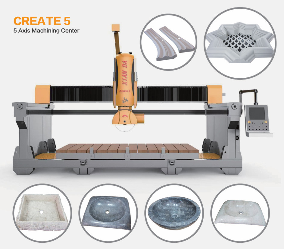 เครื่องตัดหิน CNC ทรงพลังนี้ได้รับการออกแบบมาสำหรับการประมวลผลแผ่นหินขนาดใหญ่และหนา รวมถึง: